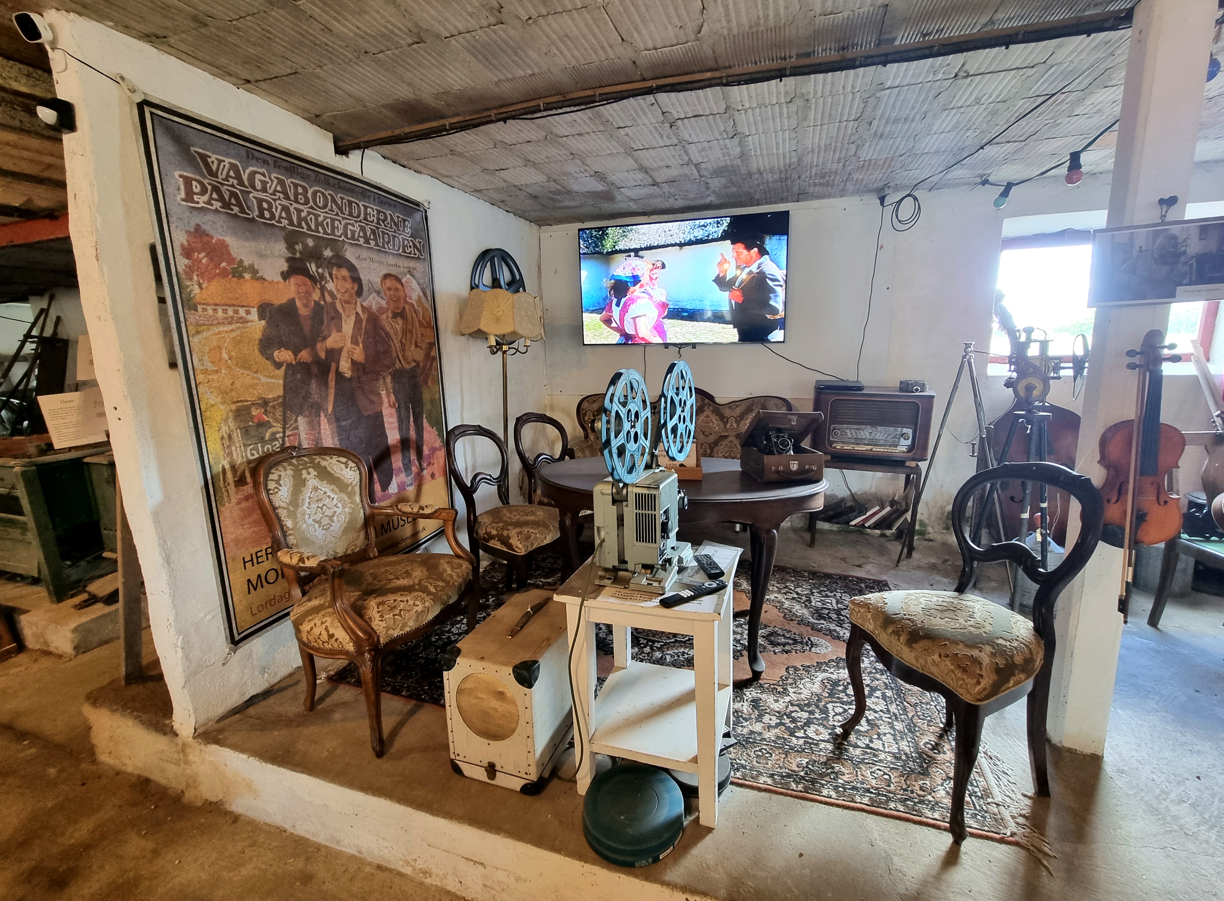 Det førte til en Volvo traktor, en mejetærsker, en grå Ferguson traktor som mange af de mandlige gæster gerne klapper "sådan én har vi selv haft", lyder det tit, knallerter og cykler, en jeep for ikke at glemme en lille hjørnestue med et lærred og en fremviser på bord.