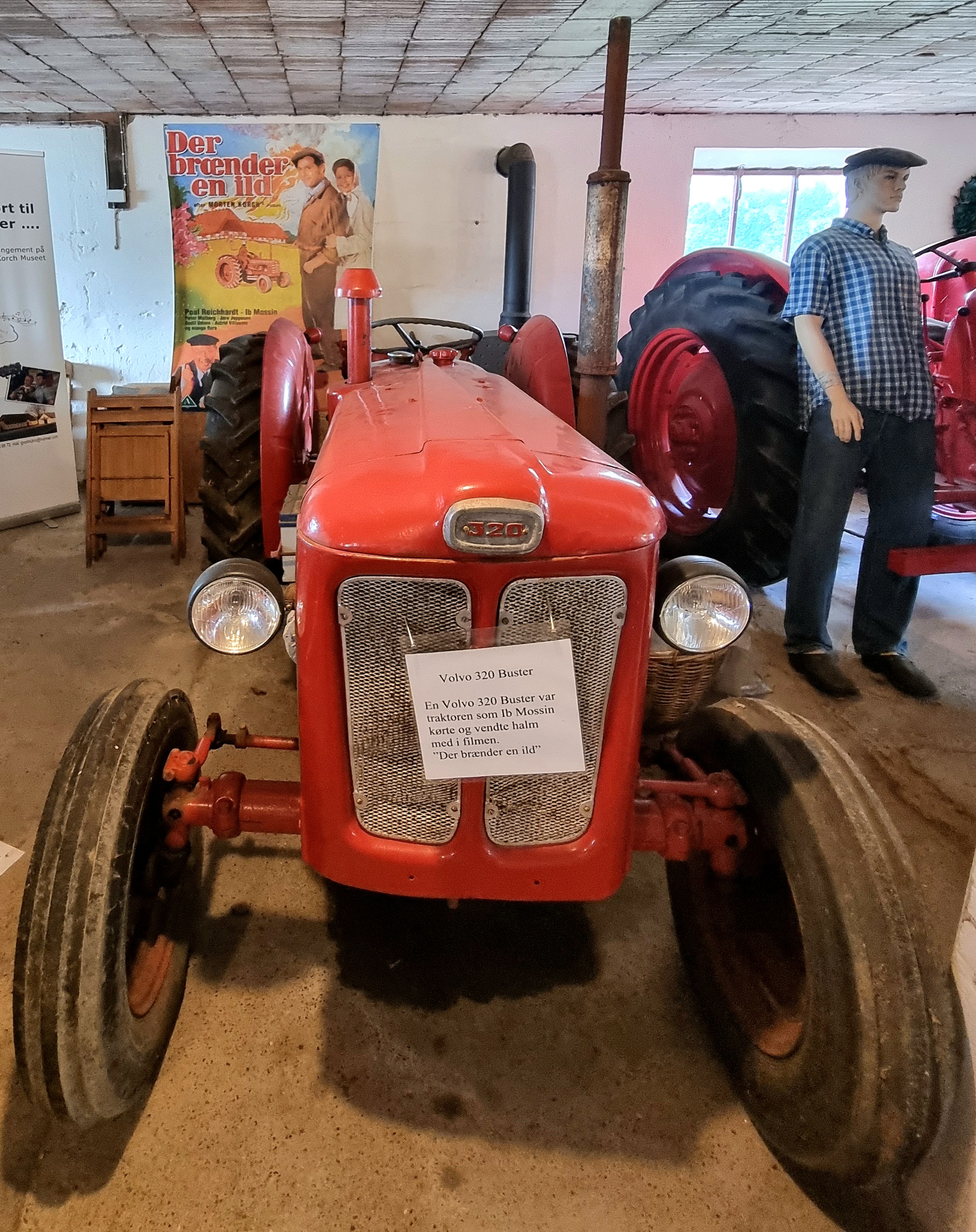 På den grå Fergusons metalsæde er klæbet en seddel med teksten "Ferguson 31 - Lily Broberg kørte den samme model i filmen "Fætrene på Torndal" i 1973.