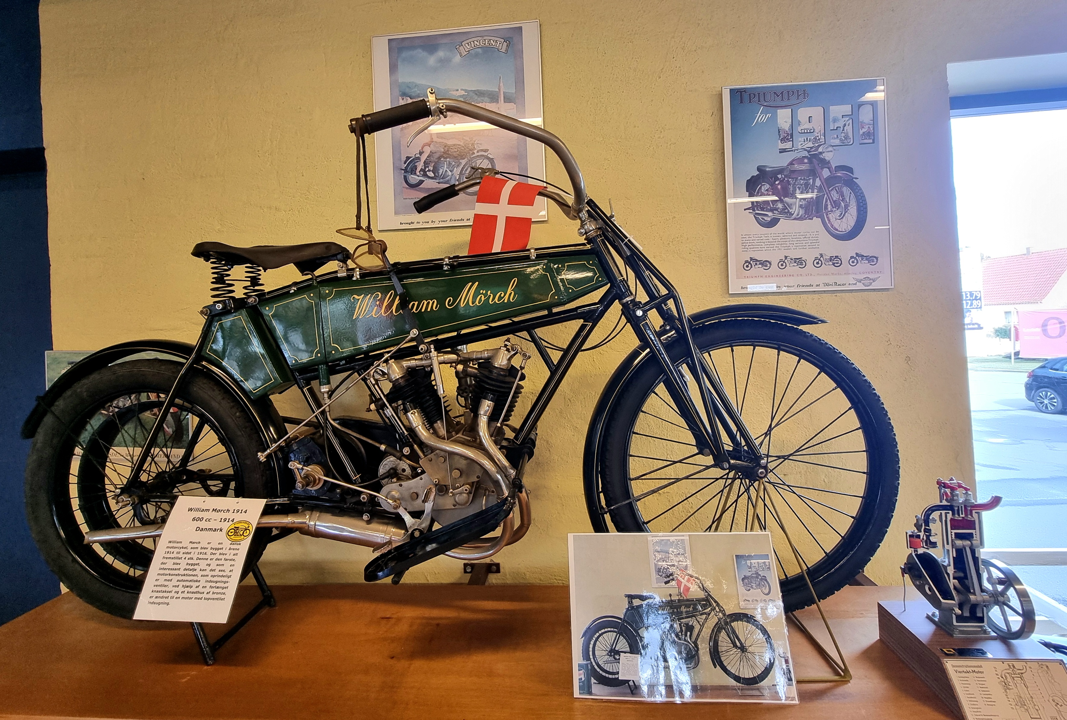 Den første dansk-byggede William Mørck motorcykel fra 1914. Der blev produceret i alt fire.