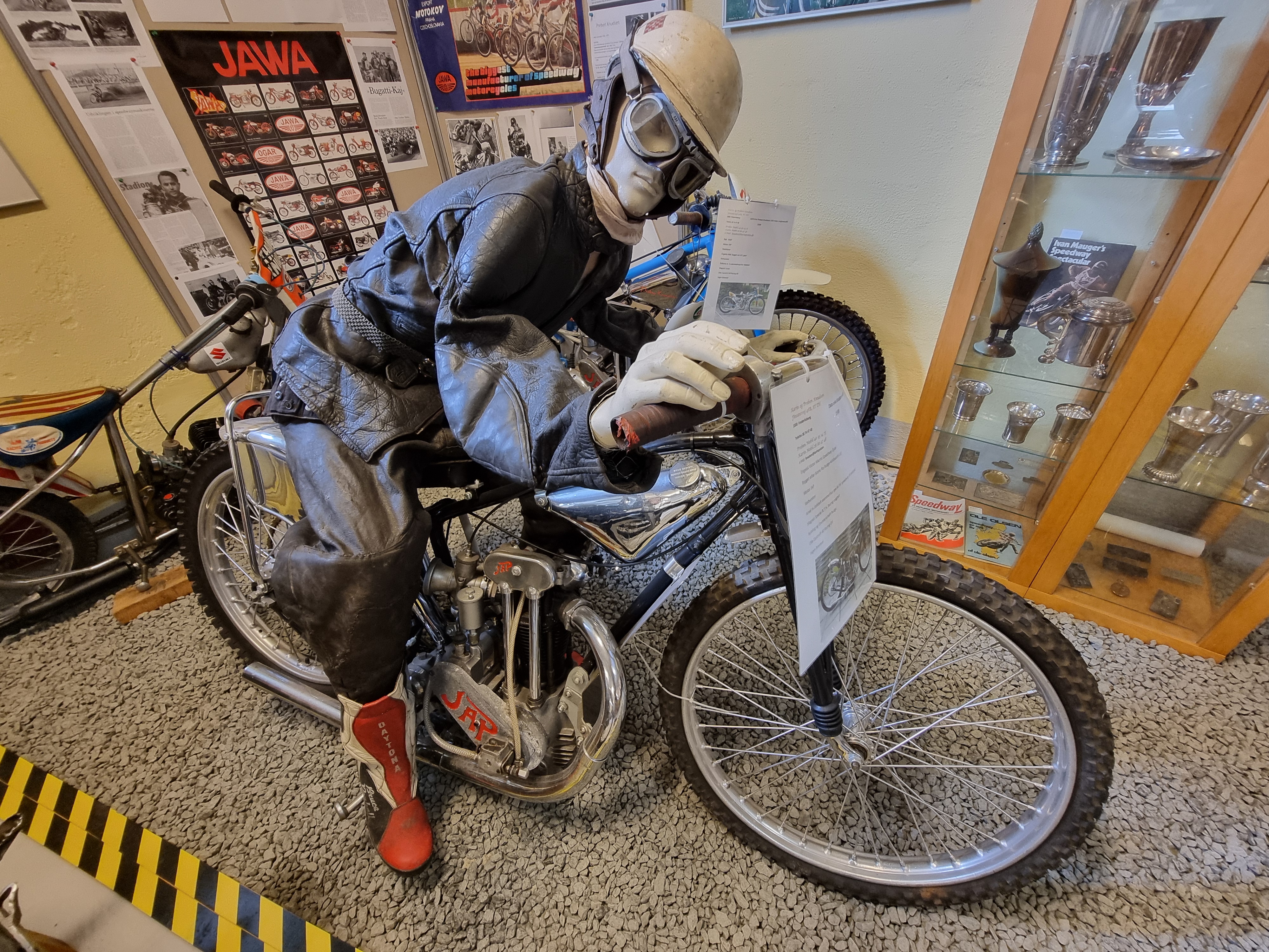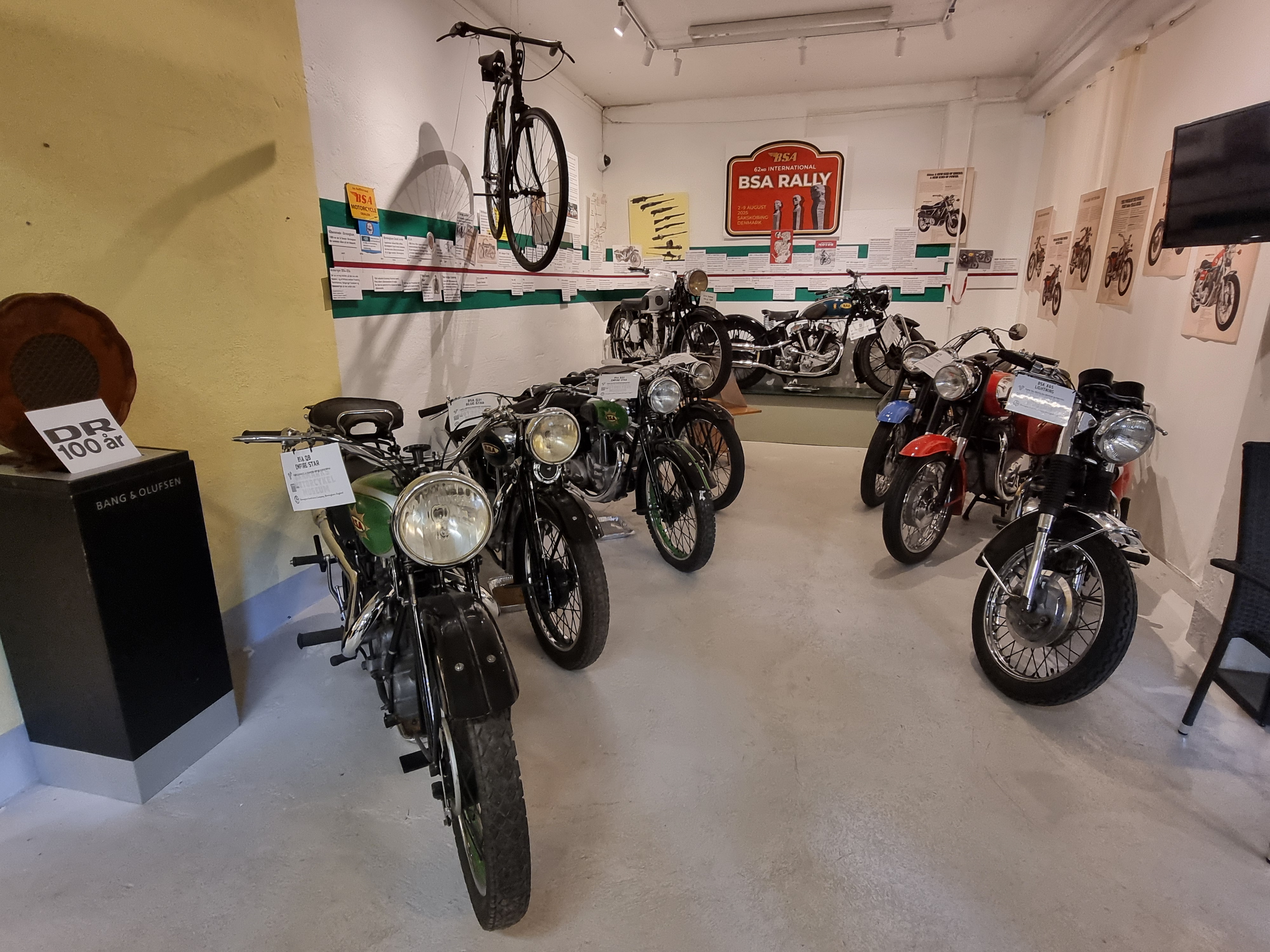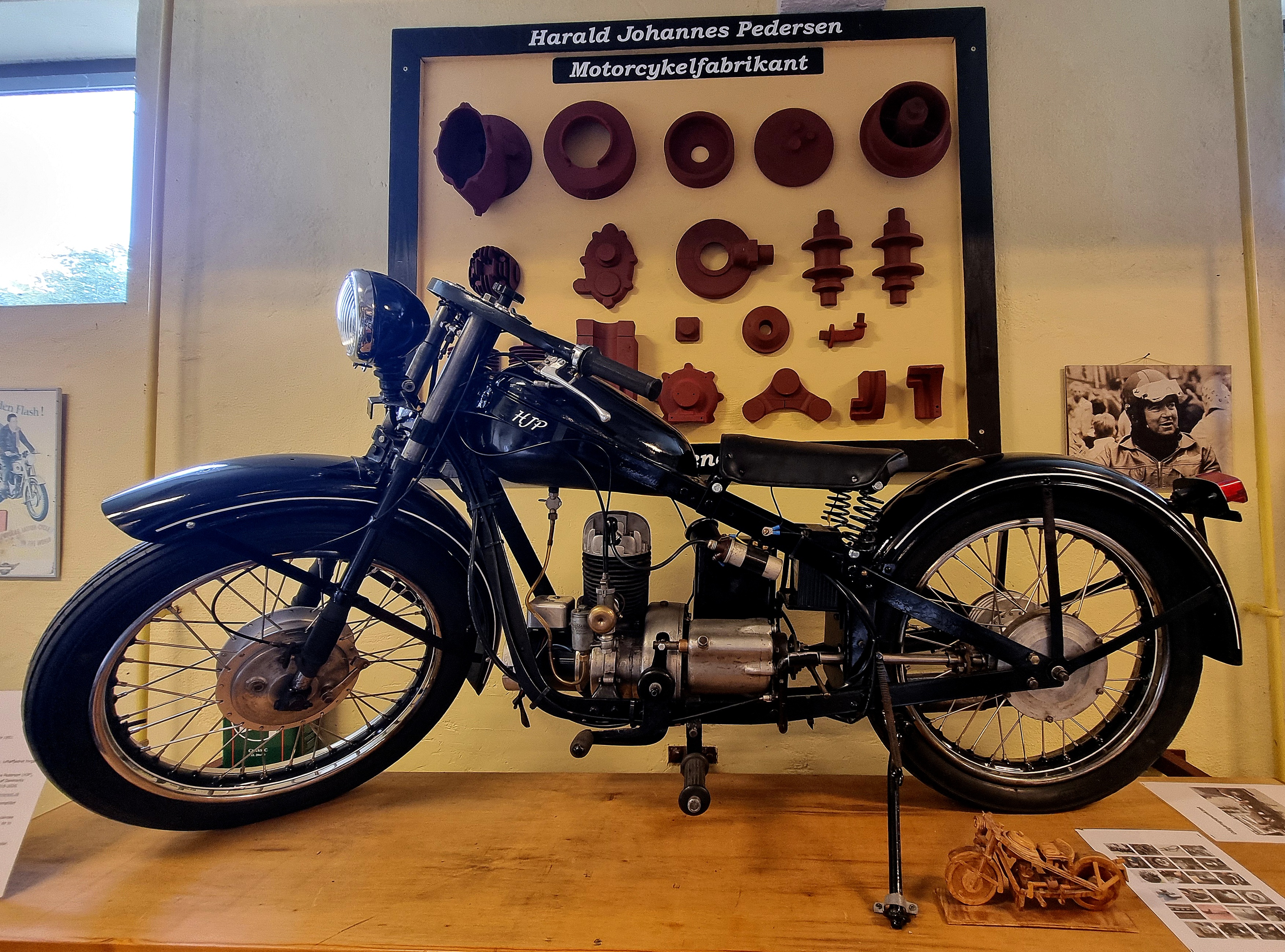 Sammen med dem vises motorer, dragter, plakater, tekstplancher mv...